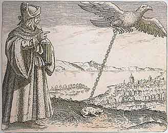 Unten: Alchemistische Darstellung und Mexikanisches Staatswappen.