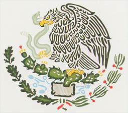 Im Mexikanischen Staatswappen ist ein Adler mit einer Schlange im Schnabel