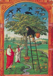 Baum ist der alchemistische Baum des Lebens;die drei Gestalten,